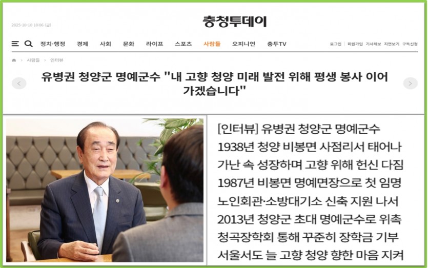 유병권 상임고문 "내 고향청양 미래발전 평생봉사"